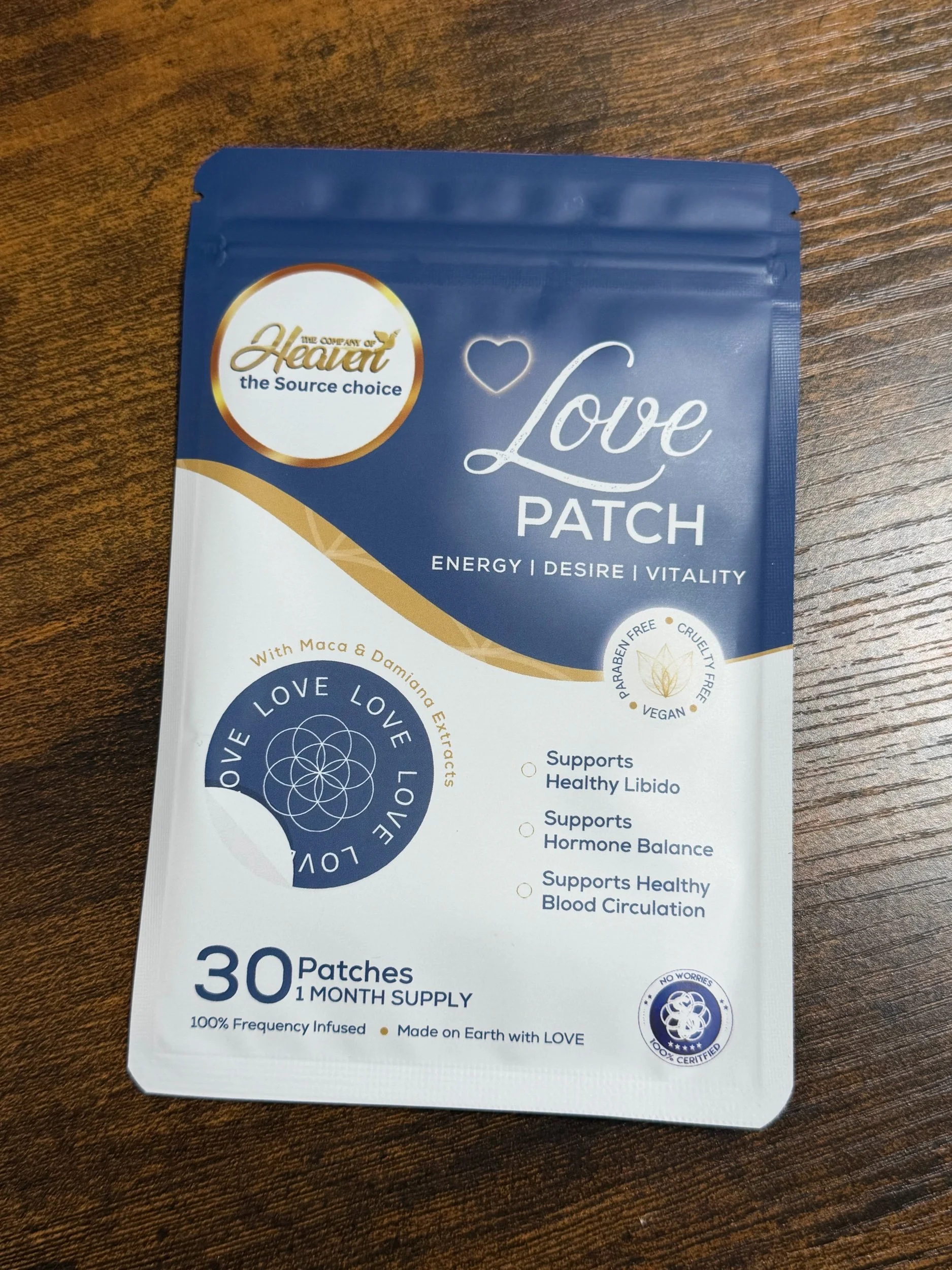 100% Frequency infused Love Patch allows your body to absorb nutrients directly through the skin. The Love Patch is designed to balance hormones, promote improved blood flow, and support your body's natural stress response. Miracles & Wonders await...